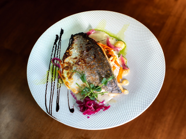 (Poireaux confits au beurre, huile d’olive et aromates, mayonnaise maison et lamelles de haddock)